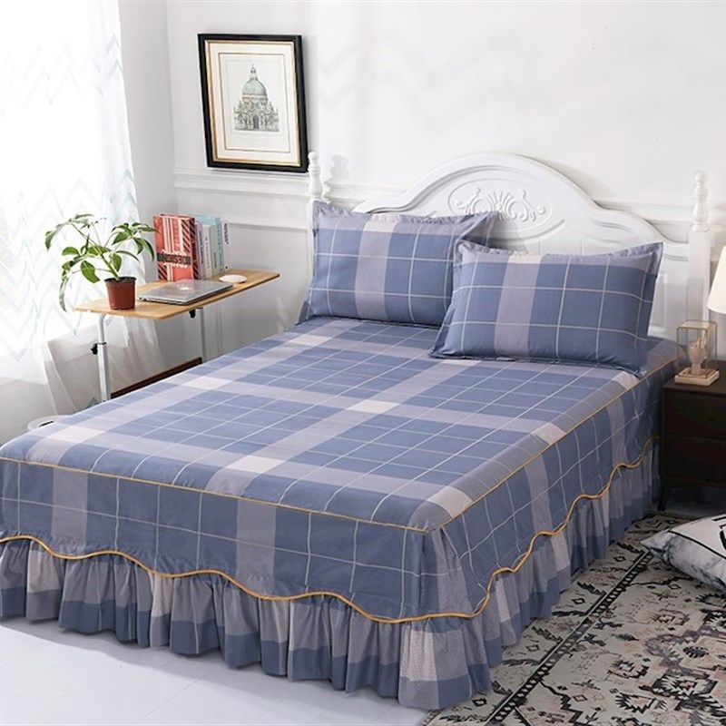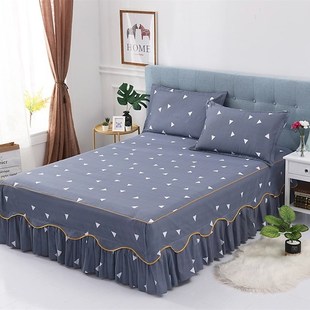 全棉床裙夹棉床笠单件纯棉床盖防尘床单床垫防滑三件套四季 通用