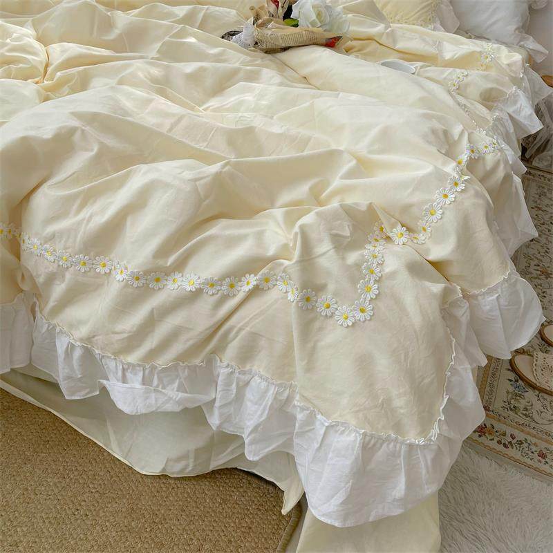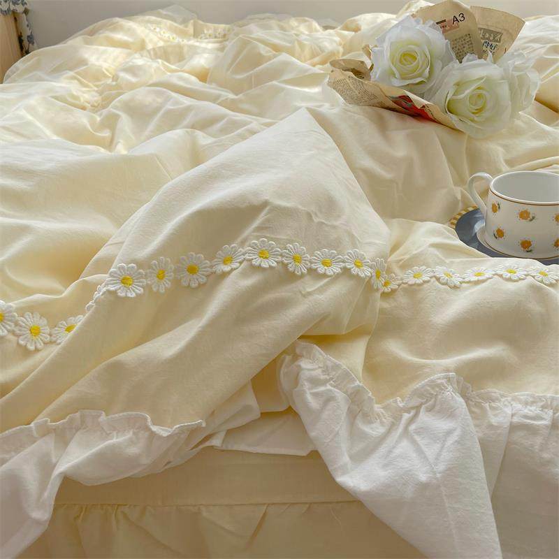 公主被纯棉水洗棉四套全棉床单床套裙 奶黄小雏菊 正品 梨梦自制件