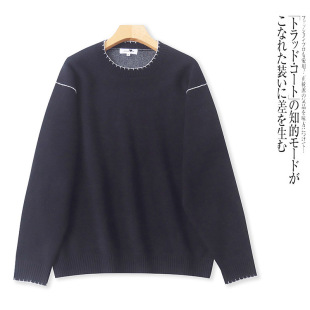 针织衫 圆领套头拼色宽松大码 新款 V2965外贸日单女士毛衣冬季