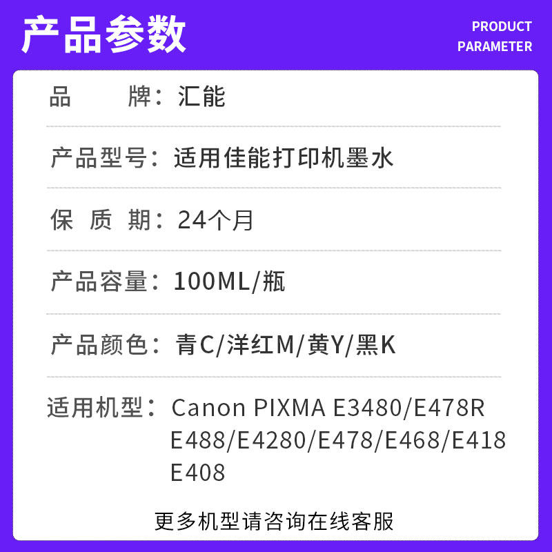 E410打印机48 E568 58墨盒补充墨汁 E478R 适用佳能e478墨水E3480