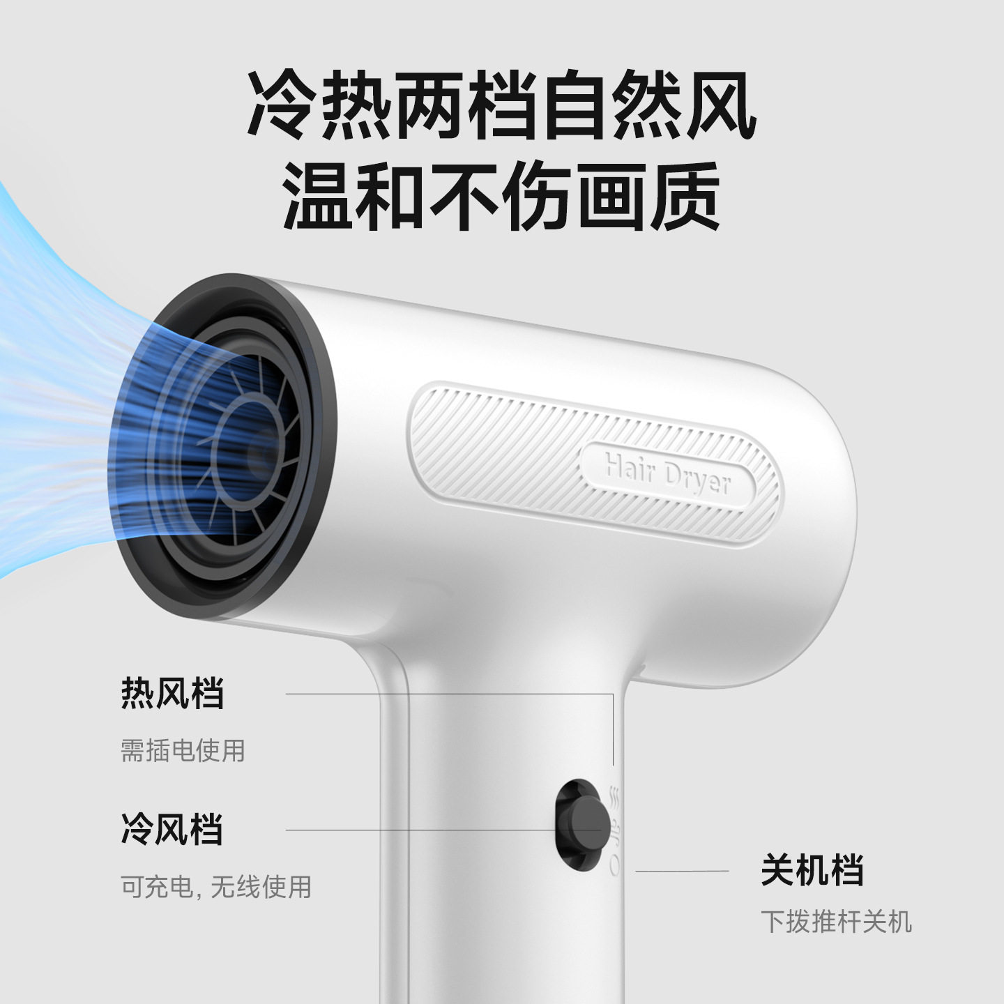 物克无线充电吹风机宿舍学生电吹风便携式 美术联考冷热干画吹发机