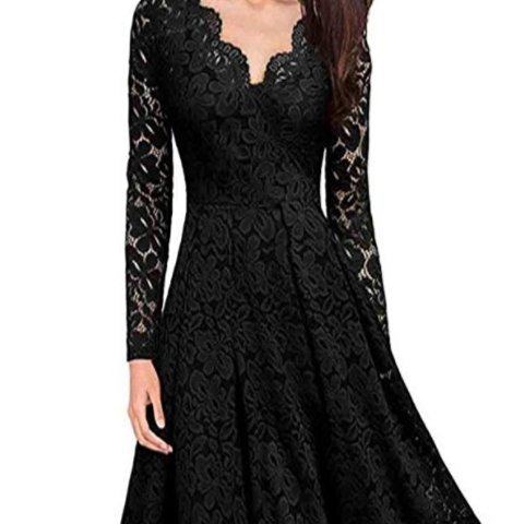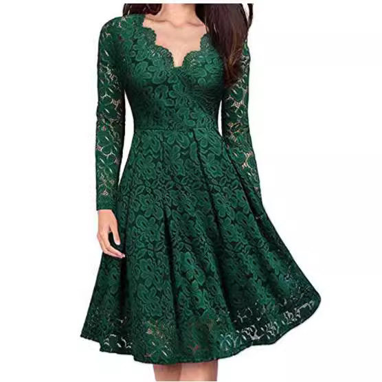 气质长裙套装 安妮不火 御姐系雪尼尔蕾丝V领开叉连衣裙女微胖大码