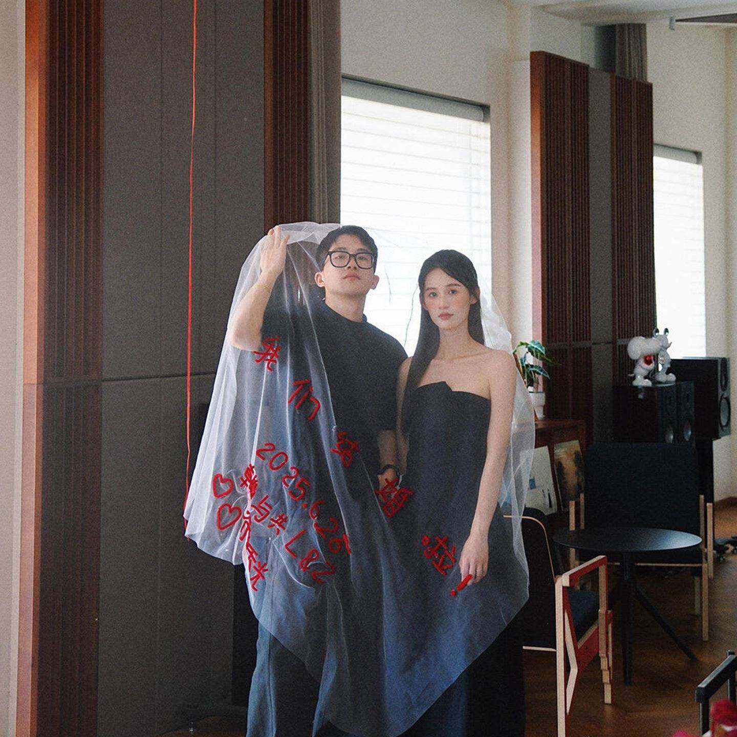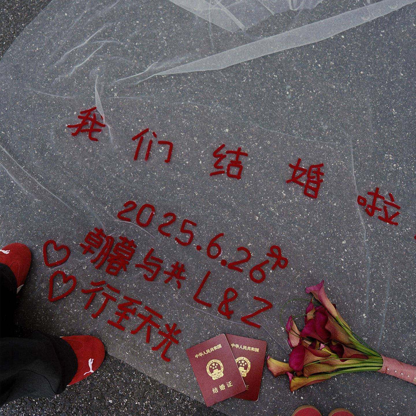 头纱领证拍照纱道线具红毛粘字创意婚纱照红F99SJHJT白结婚外景海