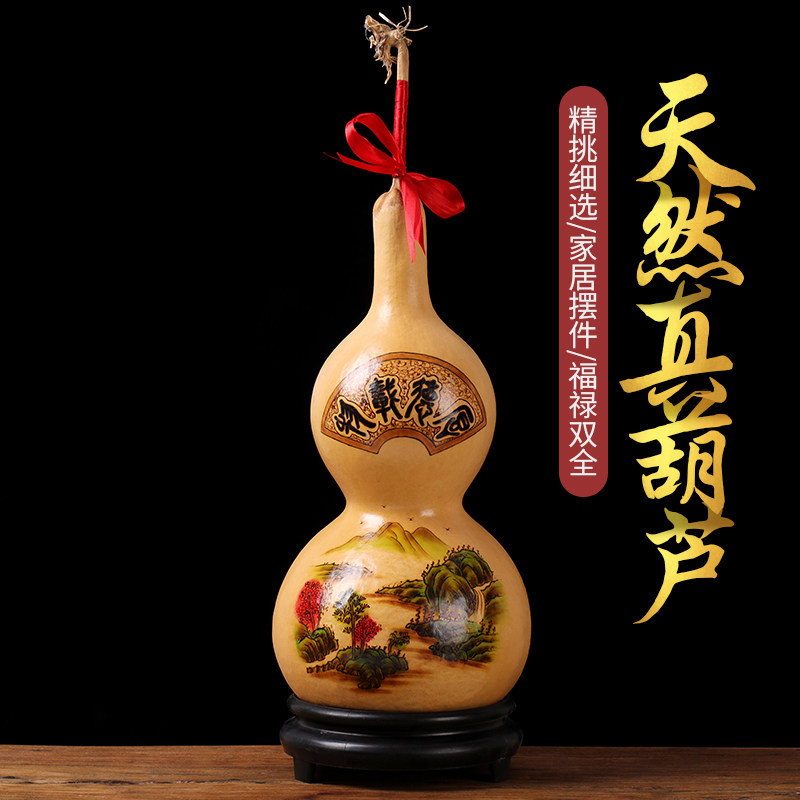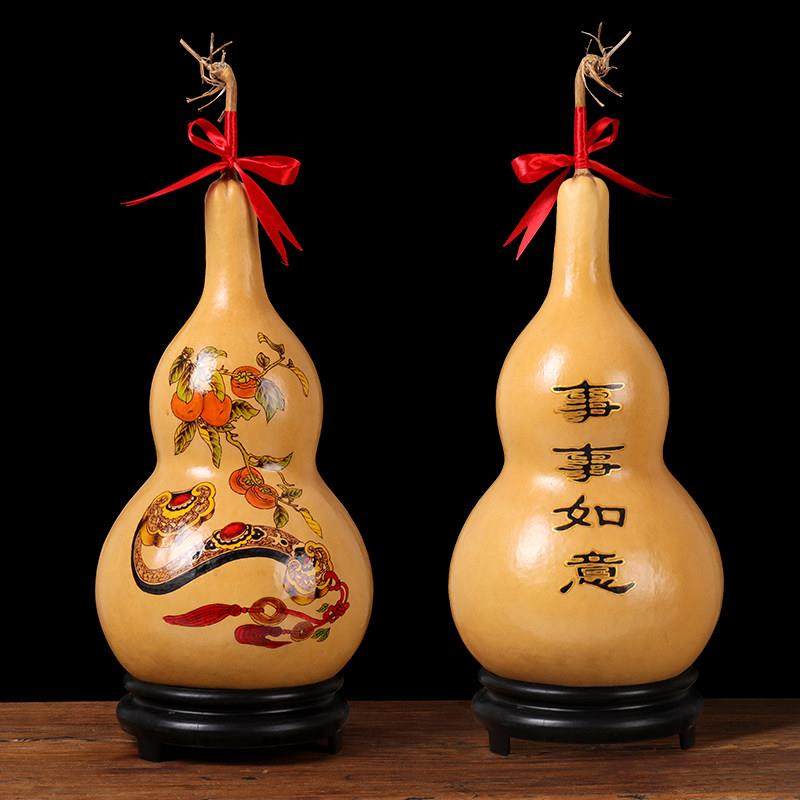 天然大葫芦摆件手工烙画彩绘雕刻工艺品客厅玄关办公礼品节日赠送