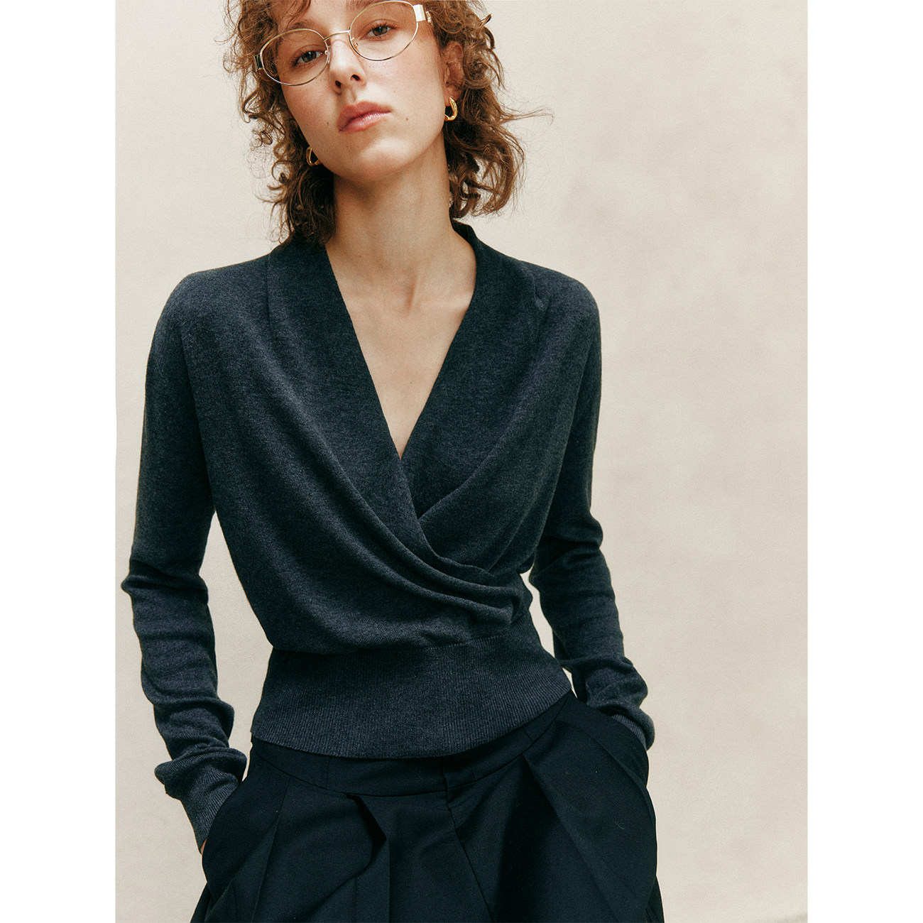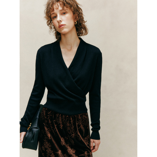 简约通勤交叉V领针织套头衫 超细支美丽诺羊毛 上衣女 奢享体验