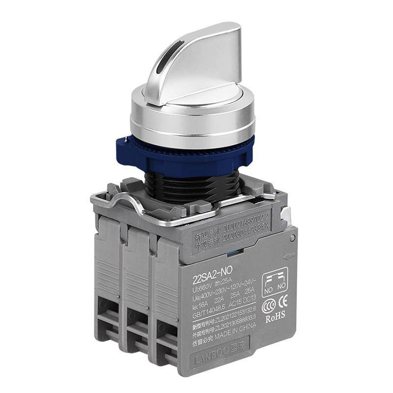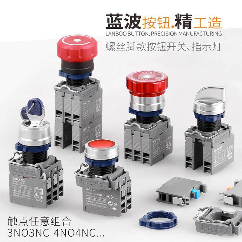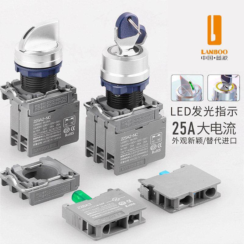 蓝波25A大电流金属钥匙钮旋钮按钮开关指示灯红绿色4常开4常闭
