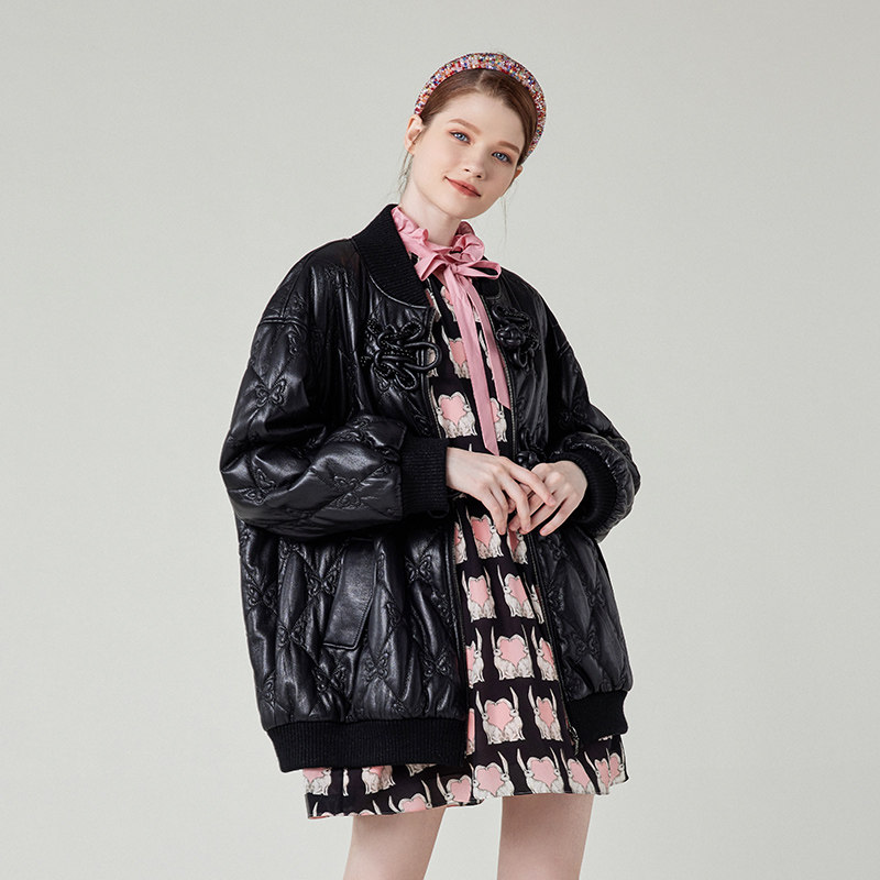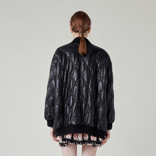 Charfen朝峰春新款 5012O 女棉服女黑色立领拉链保暖外套CFE1A509