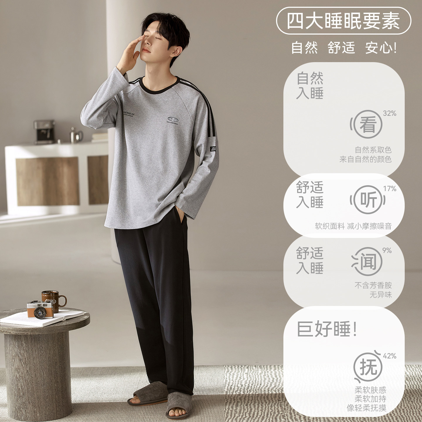 套装 宽松家居服休闲条纹男大码 柔软棉长袖 贝妍情侣睡衣女春秋新款