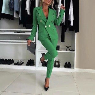 秋季 新款 个性 绿色西装 气质高端简约通勤主播职业女装 女裤 时尚 套装