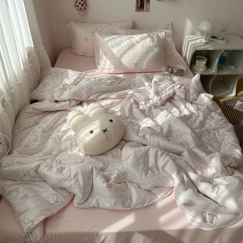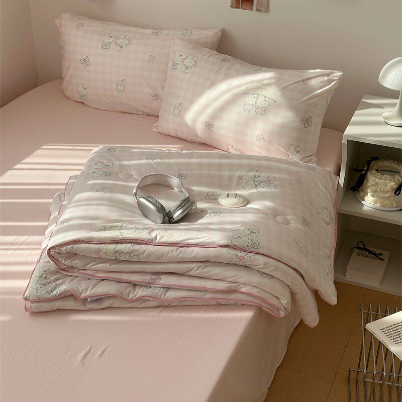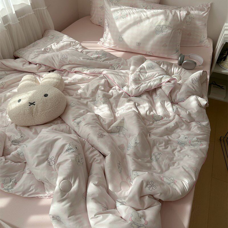 薄被子单双人夏被空调 可爱针织夏凉被四件套夏季 梨梦 撑伞小兔h