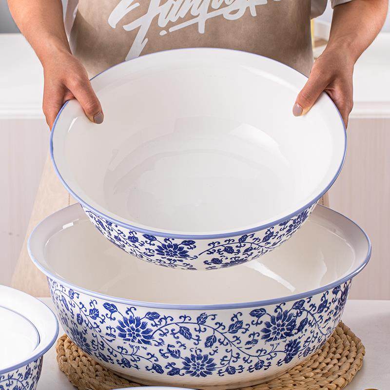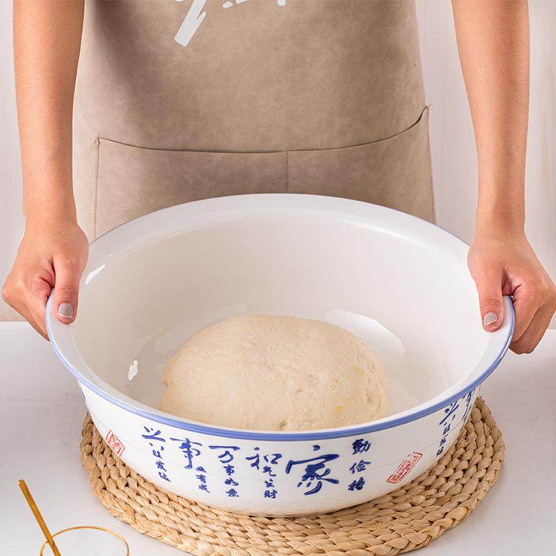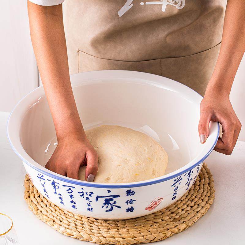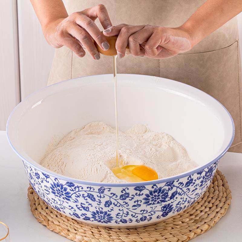 V45O和面盆家用陶瓷加厚大盆不粘面中式 揉面盆青花号厨房洗菜