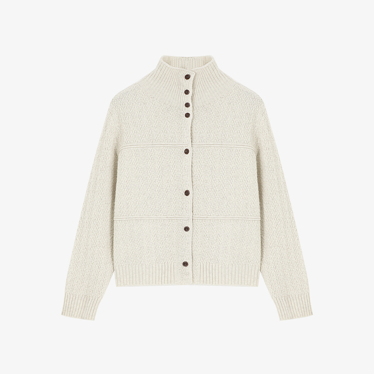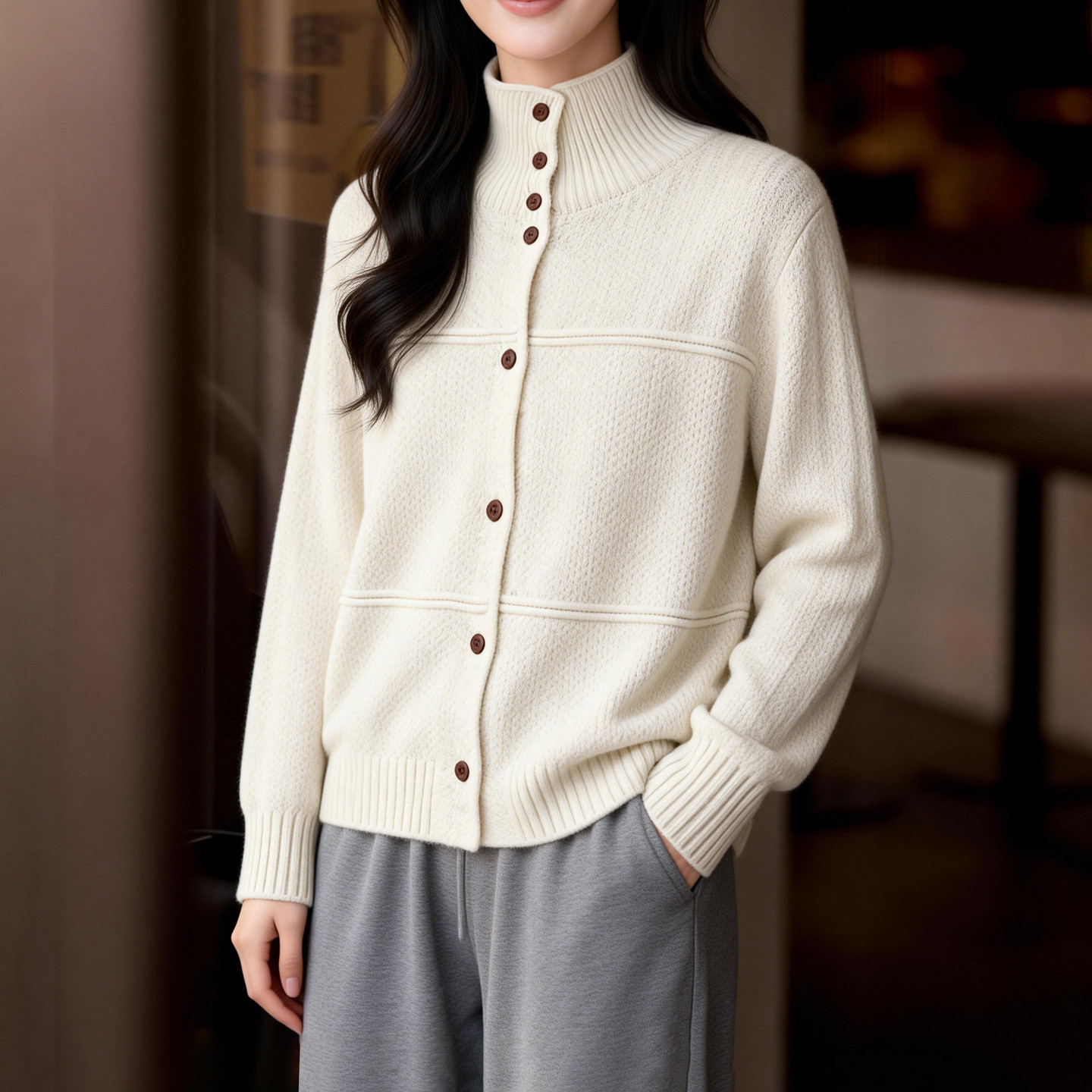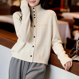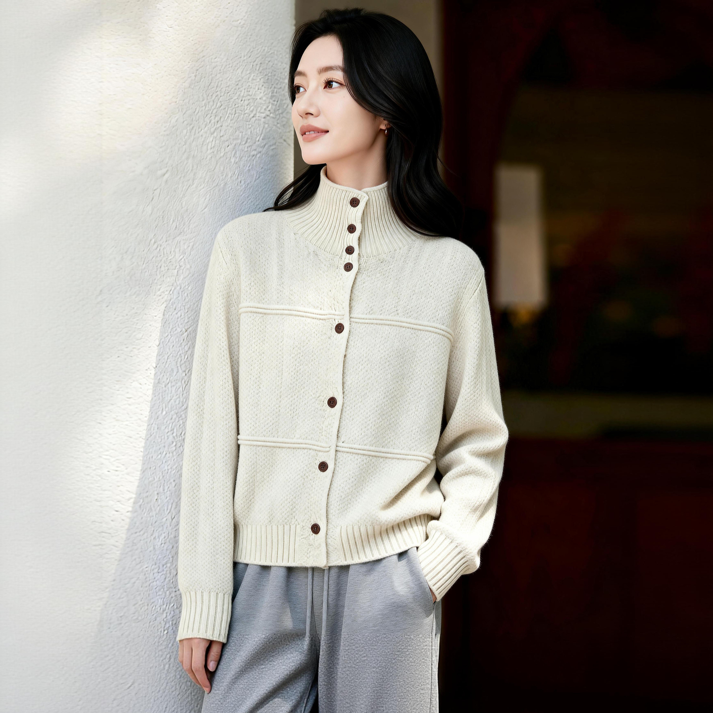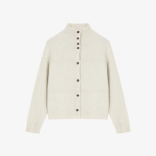 毛衣女冬慵懒风针织外套 百家好高领单排扣绵羊毛开衫 Basic House