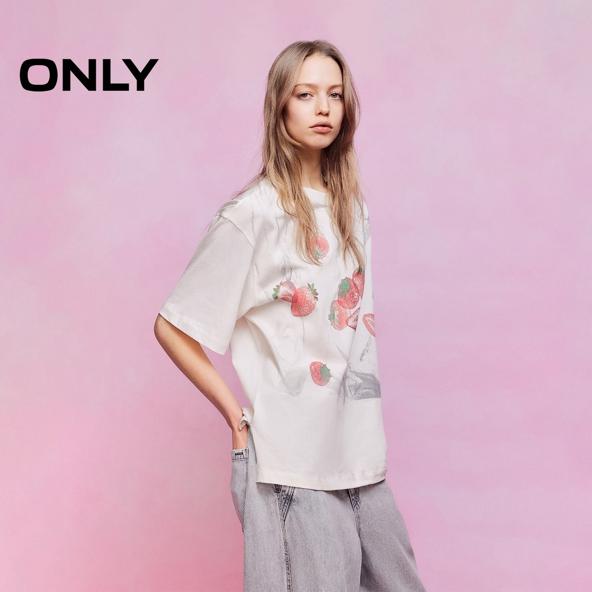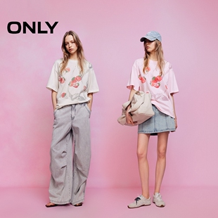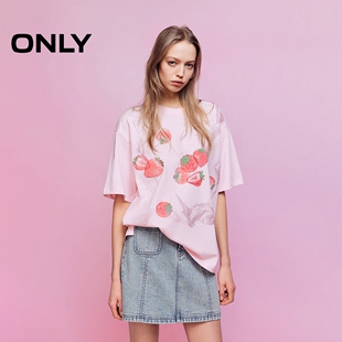 T恤女 纯棉上衣草莓印花OVERSIZE落肩圆领短袖 ONLY2026春季 新款