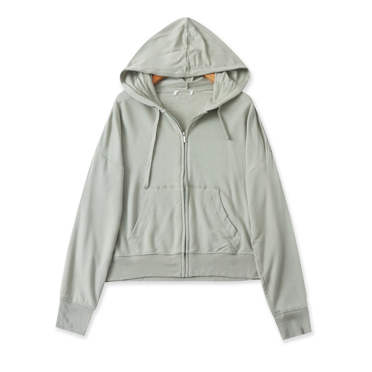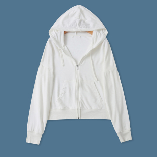 拉链外套19485 百搭休闲高弹力长袖 莫代尔连帽卫衣春新款 外贸女装