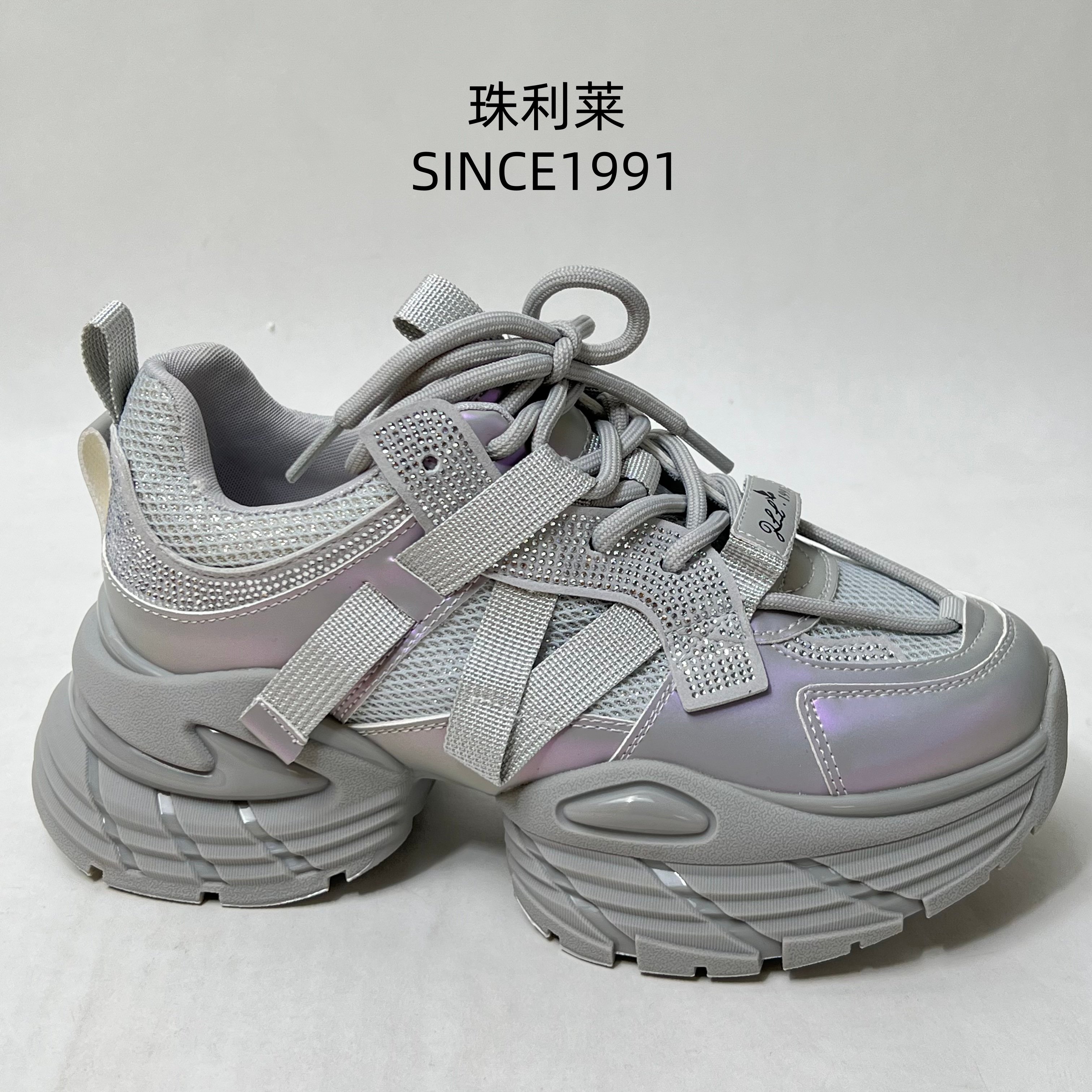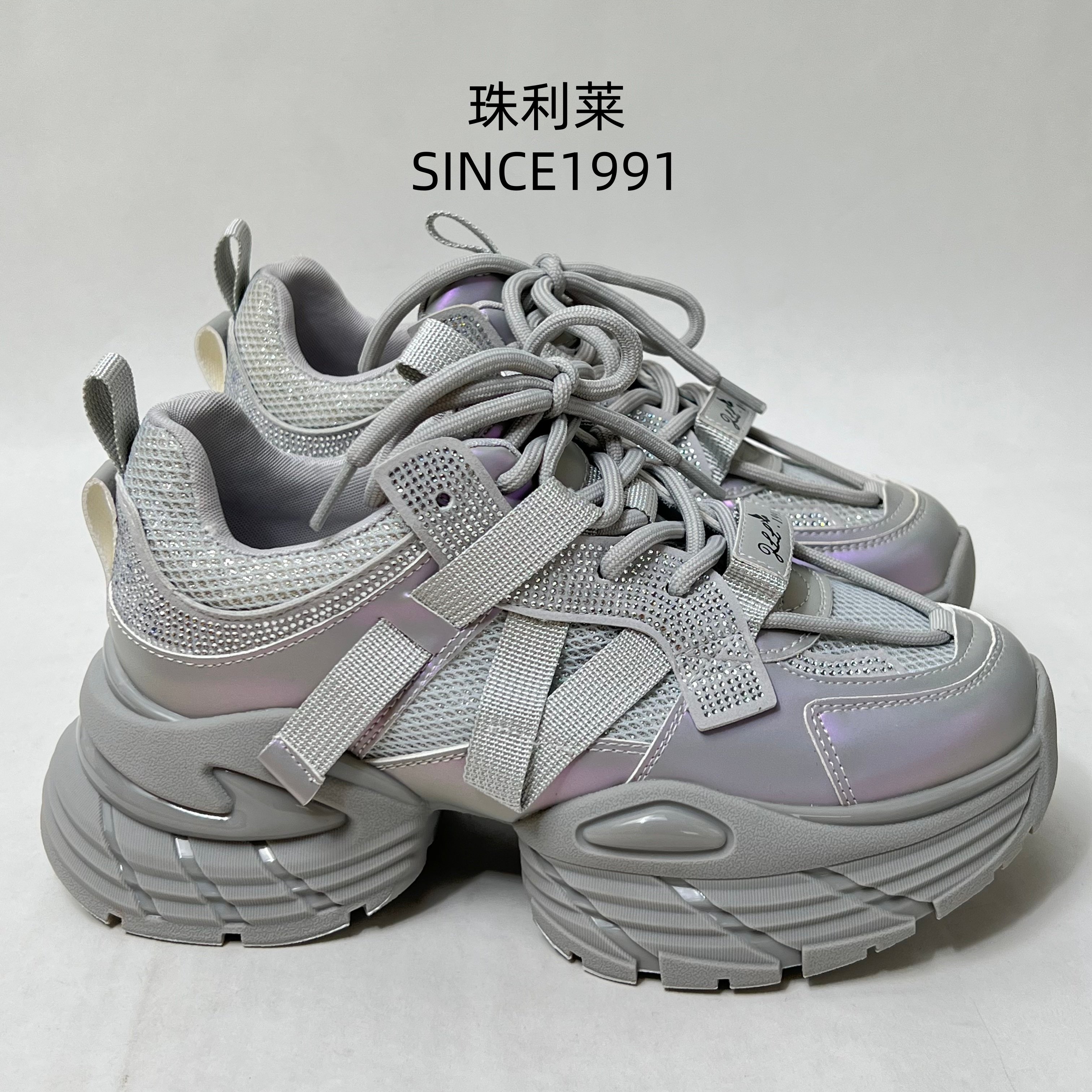 女款 厚底加绒增高休闲运动鞋 2025爆款 新款 秋冬季 达芙妮灰色老爹鞋