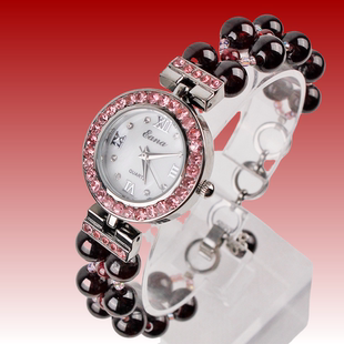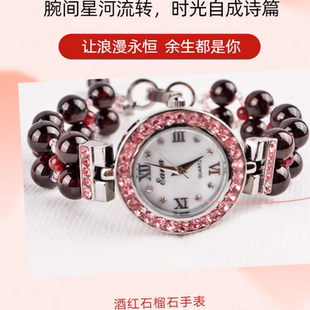 带珠宝鉴定石榴石手链表女式 手表镶钻女士手表生日礼物女贝母手表
