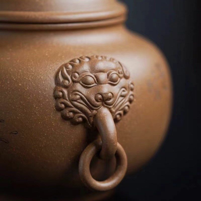 宜兴紫砂茶叶罐 助工钱晨彬作品精品高端茶罐 双环兽耳茶仓