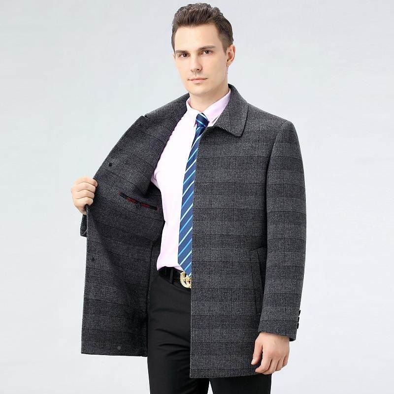2024冬新品 翻大领双衣8823面呢羊毛呢秋衣男中年羊绒风羊毛外 男士