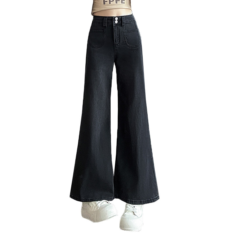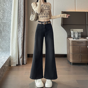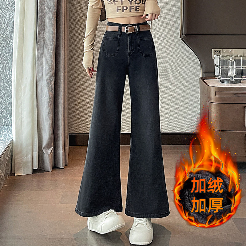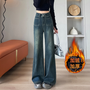 脚阔腿牛仔裤 高腰显瘦宽松垂感拖地裤 女加绒长裤 秋冬季 子 新款 大裤