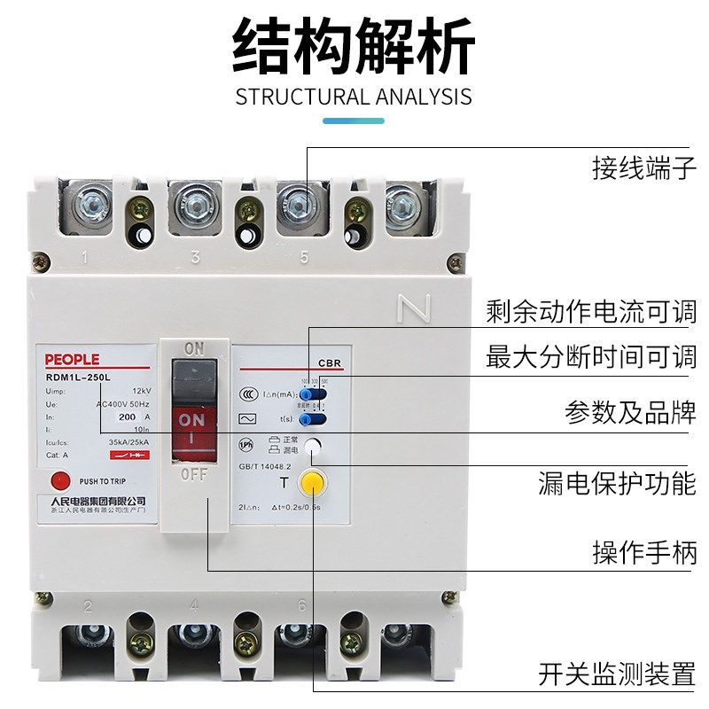 人民电器漏电断路器RDM1L 630A三相四线漏保100A漏电保护器250A