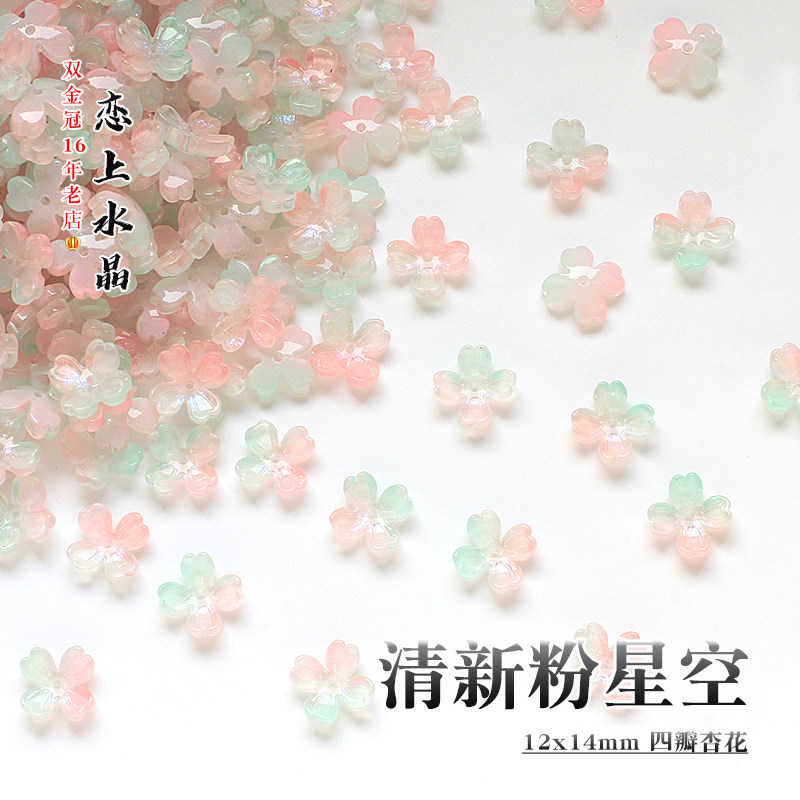 50颗12x14mm中孔四瓣杏花发饰手链手机链配饰diy古风发簪手工材料
