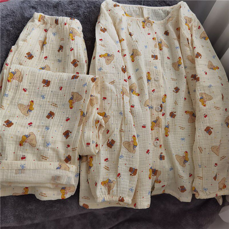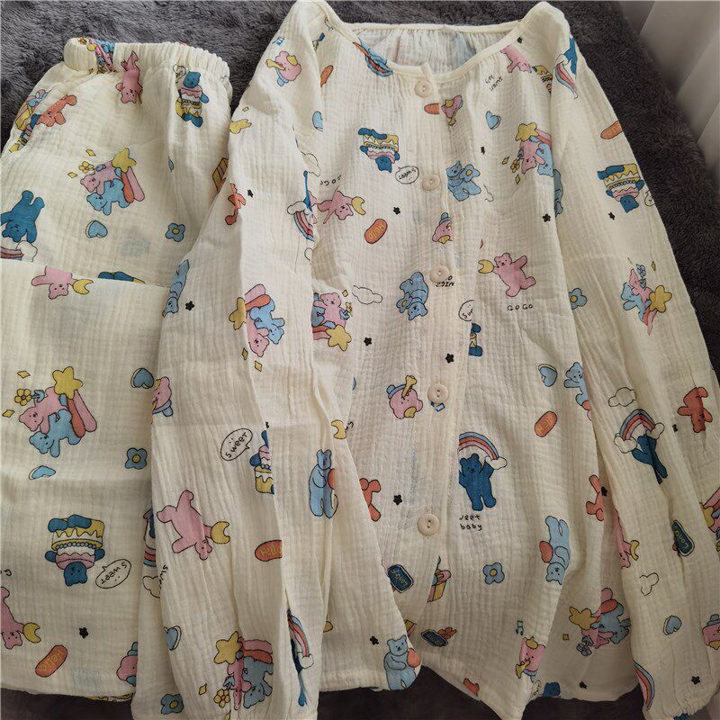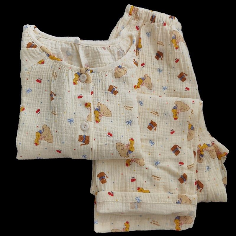 长裤 长袖 睡衣家居服 睡衣甜美在逃公主圆领开衫 纯棉女生春夏薄款