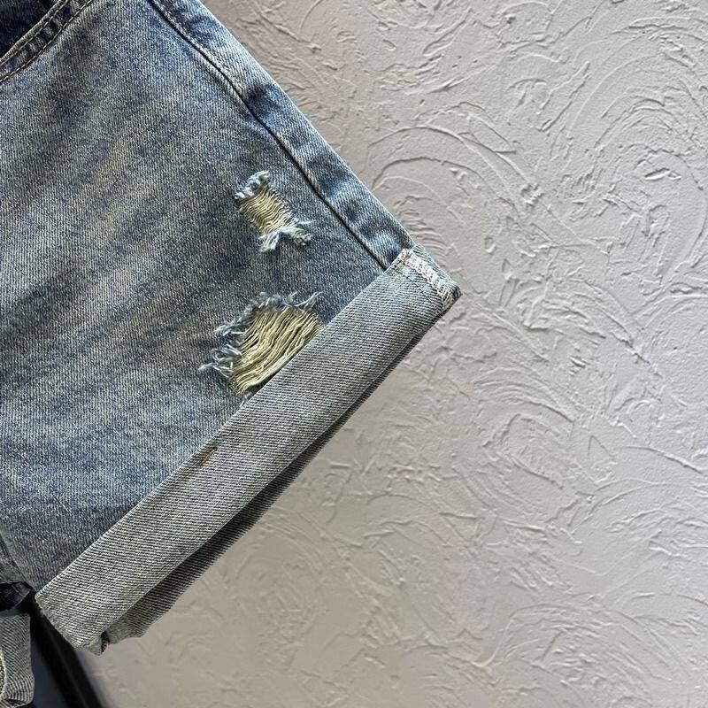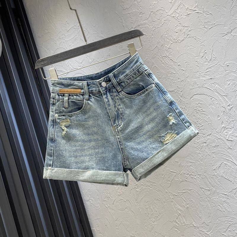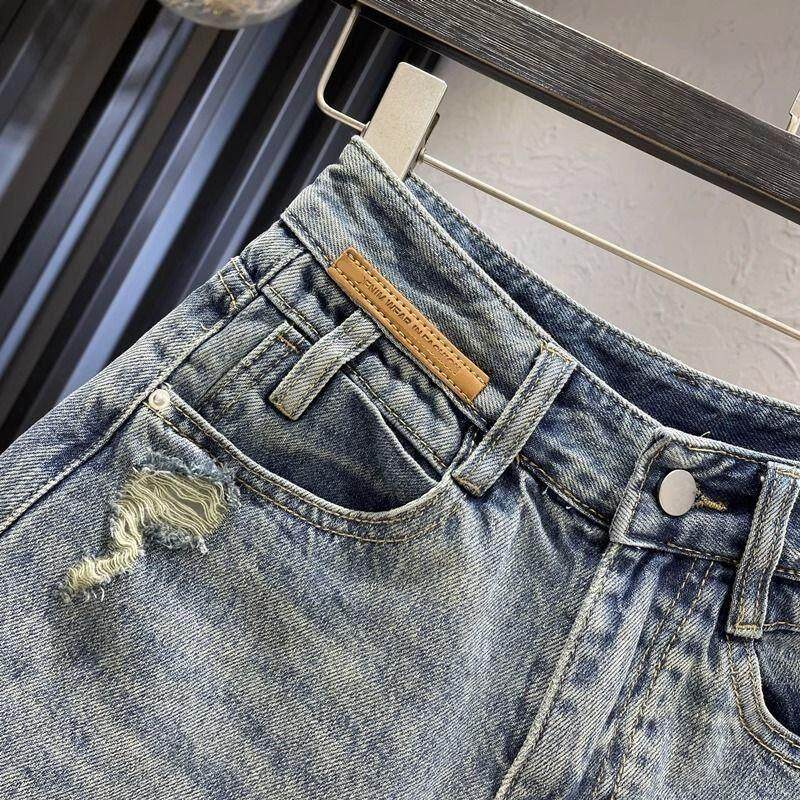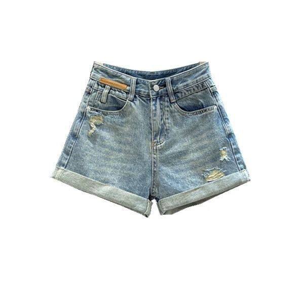 高腰宽松显瘦设计感阔腿直筒热裤 新款 女2024夏季 复古卷边牛仔短裤