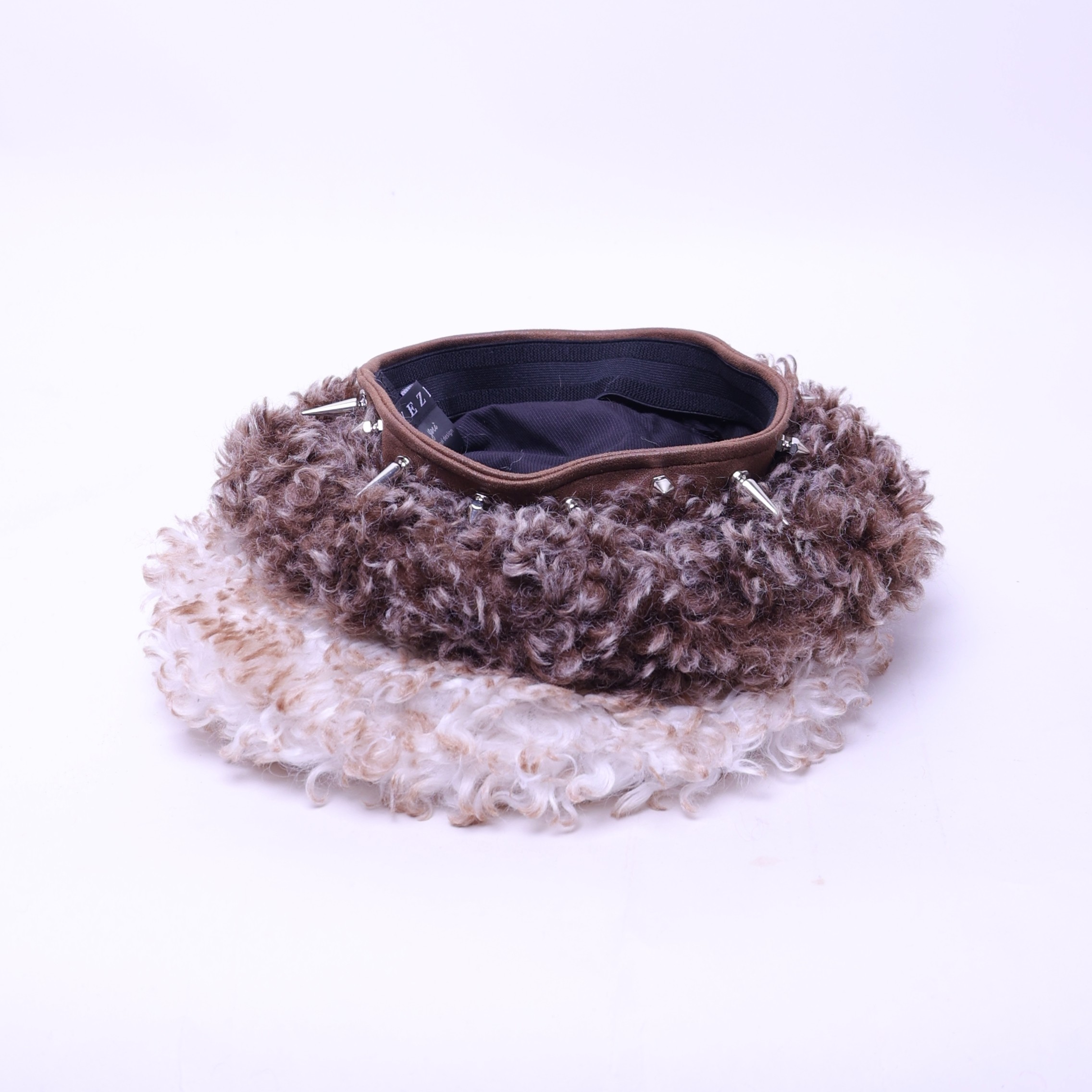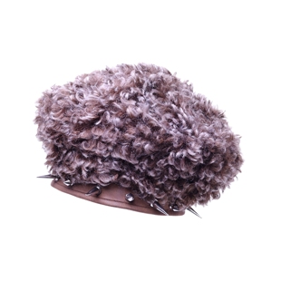 铆钉装 YEZI 亚比朋克风 原创设计 饰羊卷毛男女通用毛绒贝雷帽