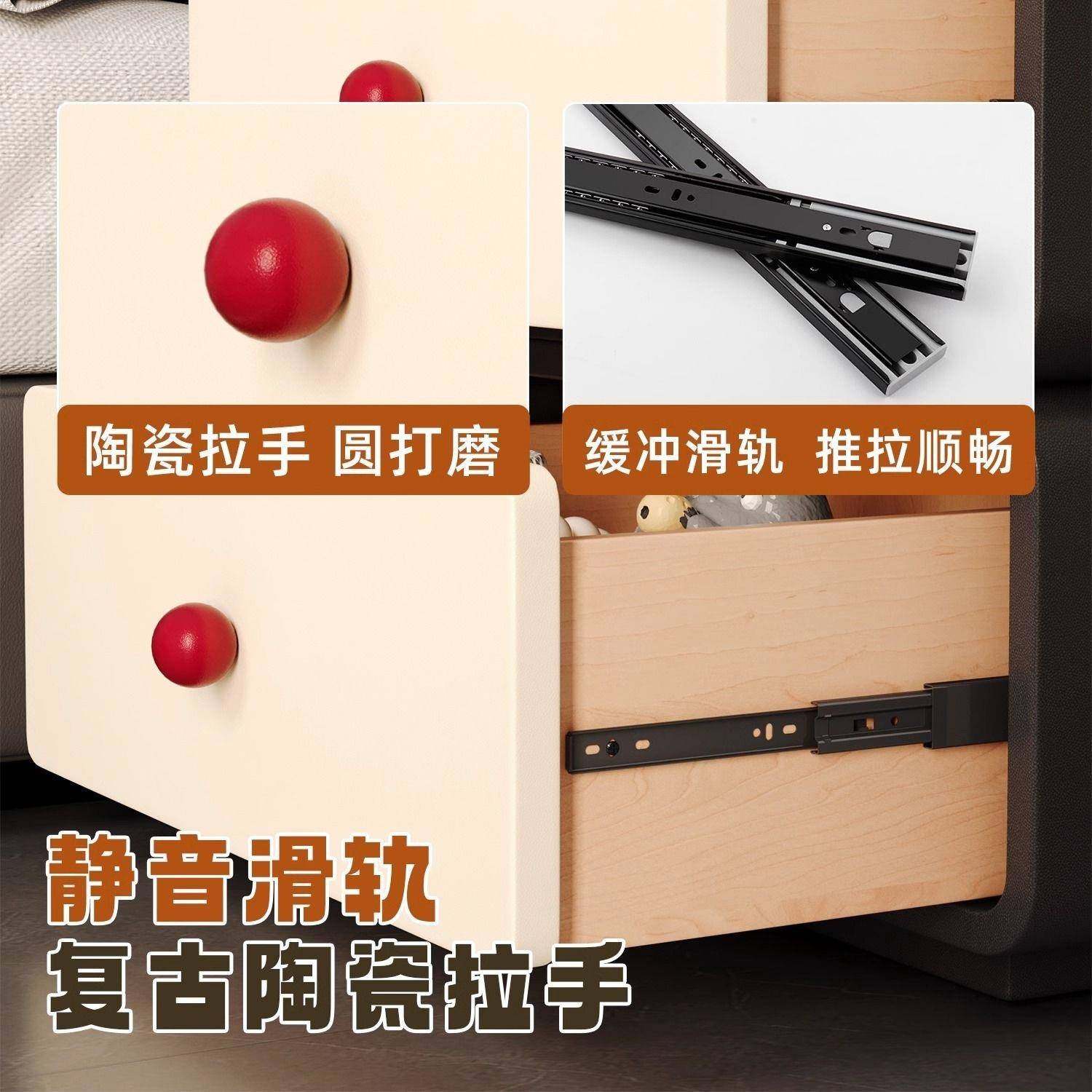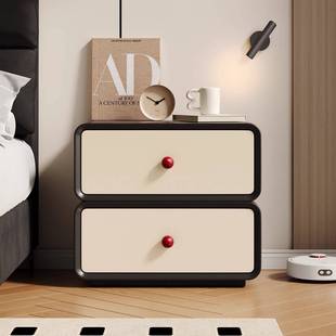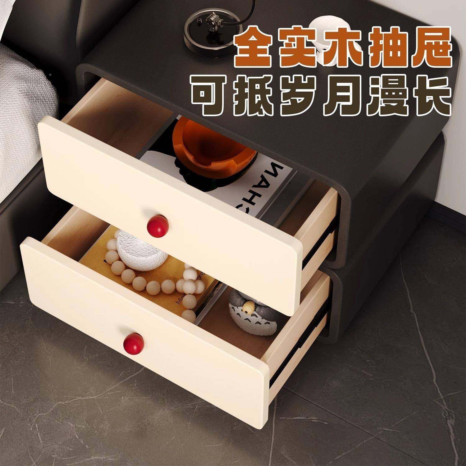 奢实8020木床头柜柜卧床室家用边小收纳简约现代奶油新款 免轻安装