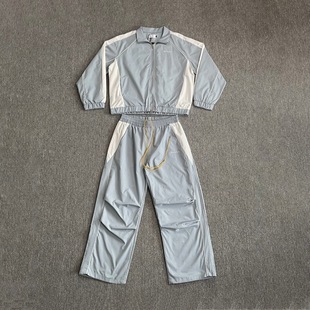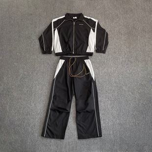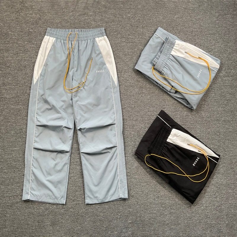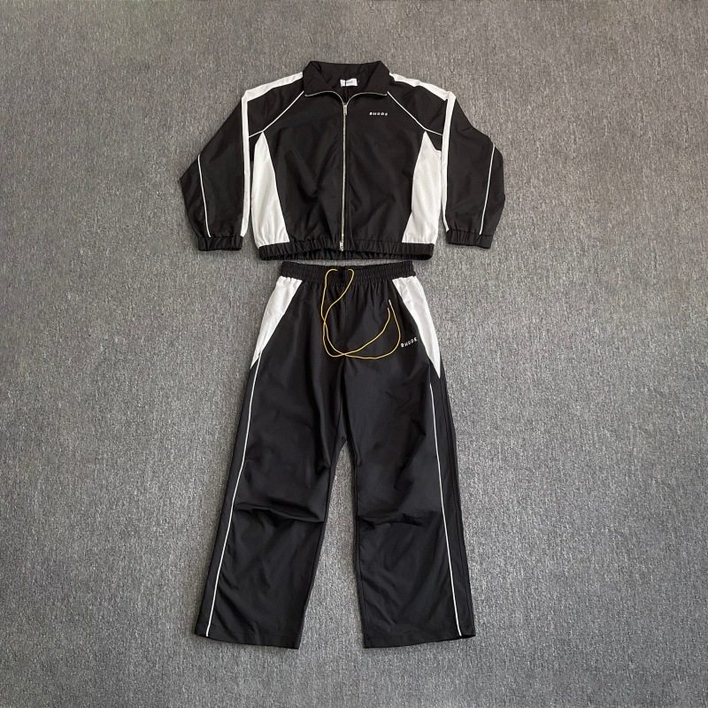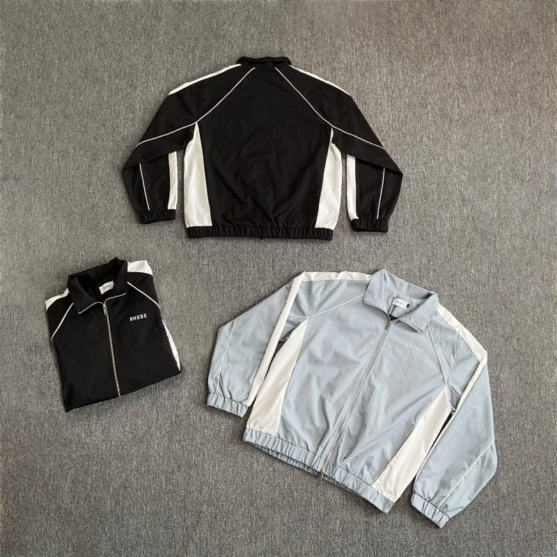 Rhude美潮街头刺绣字母拼接撞色立领风衣夹克男女休闲长裤 套装