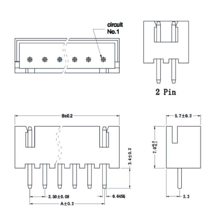 TJC3 6P针座 XH2.54 连接器 2.54mm间距端子 1000只 6P直针