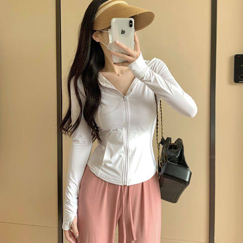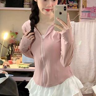型外穿潮UPF50 夏季 透气轻薄粉色冰丝防晒衣女遮阳运动防晒服修身