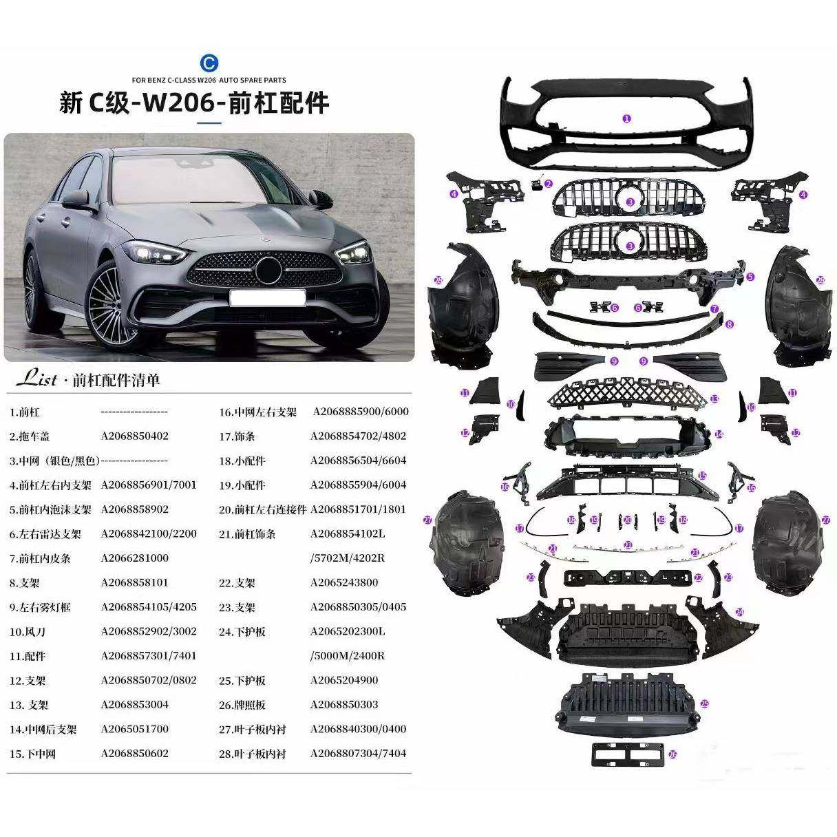 22款 C43C63排气四出 奔驰新C级W206尾唇尾喉前后总成包围AMG改装