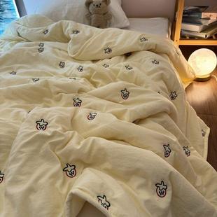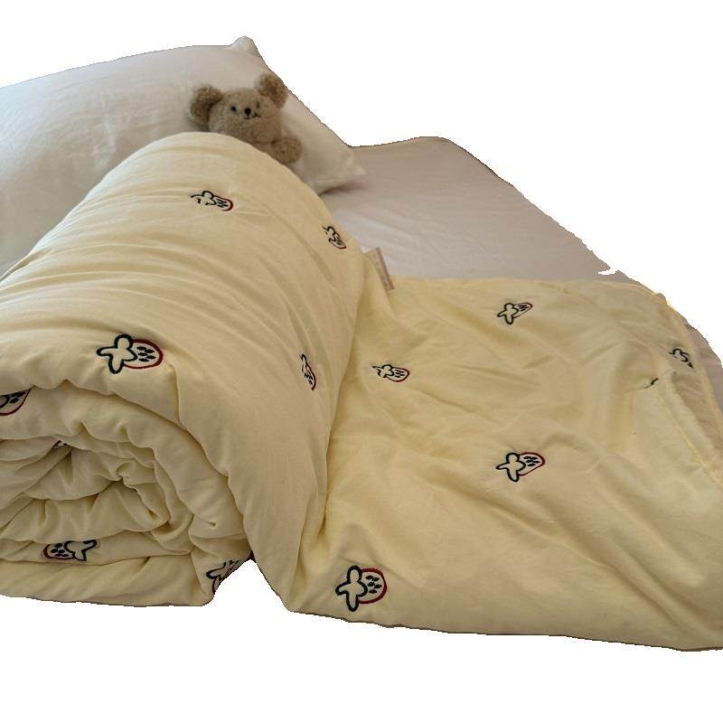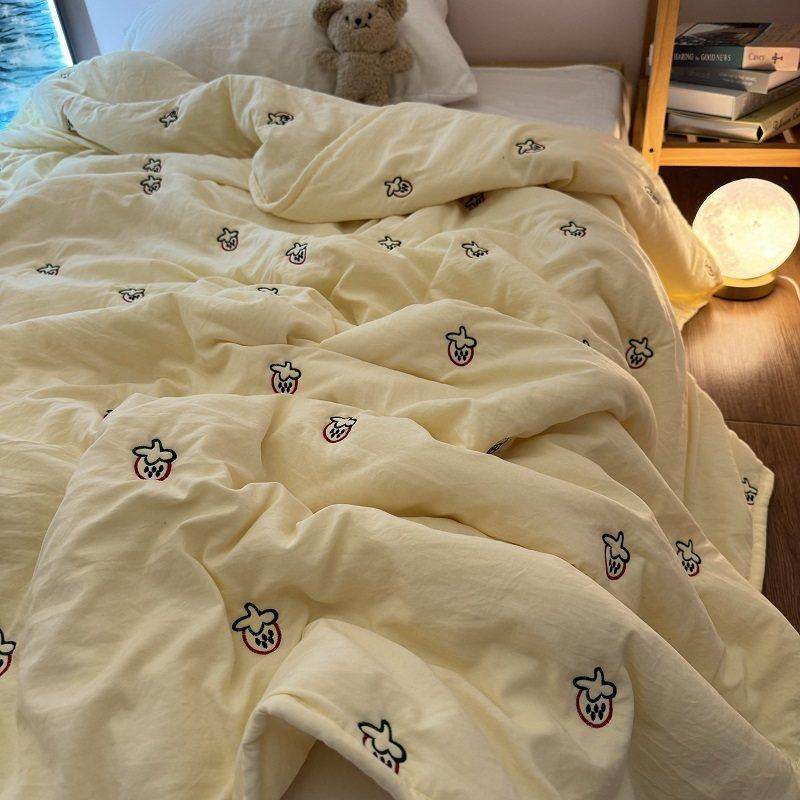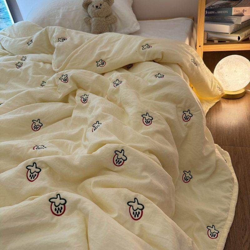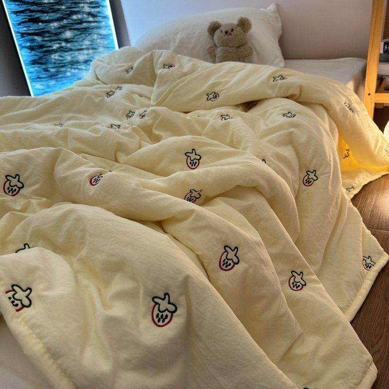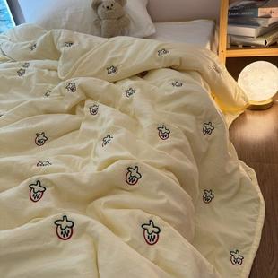少女心奶黄色草莓刺绣夏凉被超柔软水洗棉夏被单双人可机洗空调被