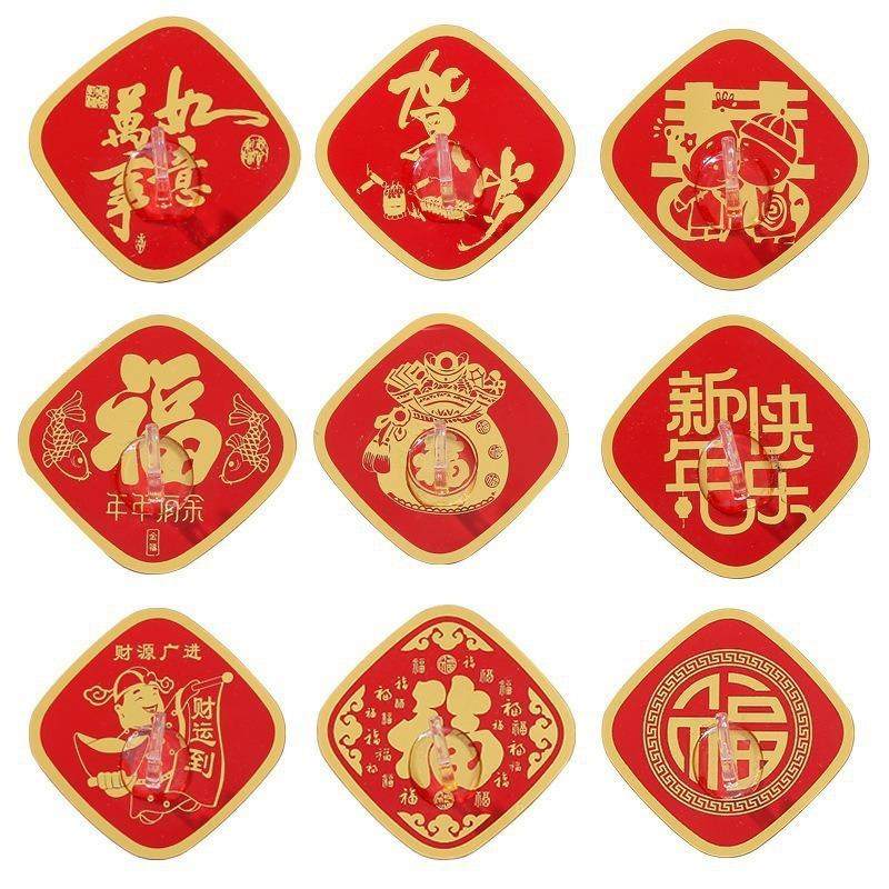 福字挂钩新年红色喜庆强力粘胶免打孔无痕墙壁挂墙承重中国结粘钩