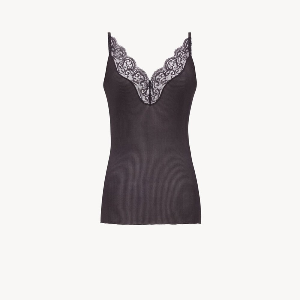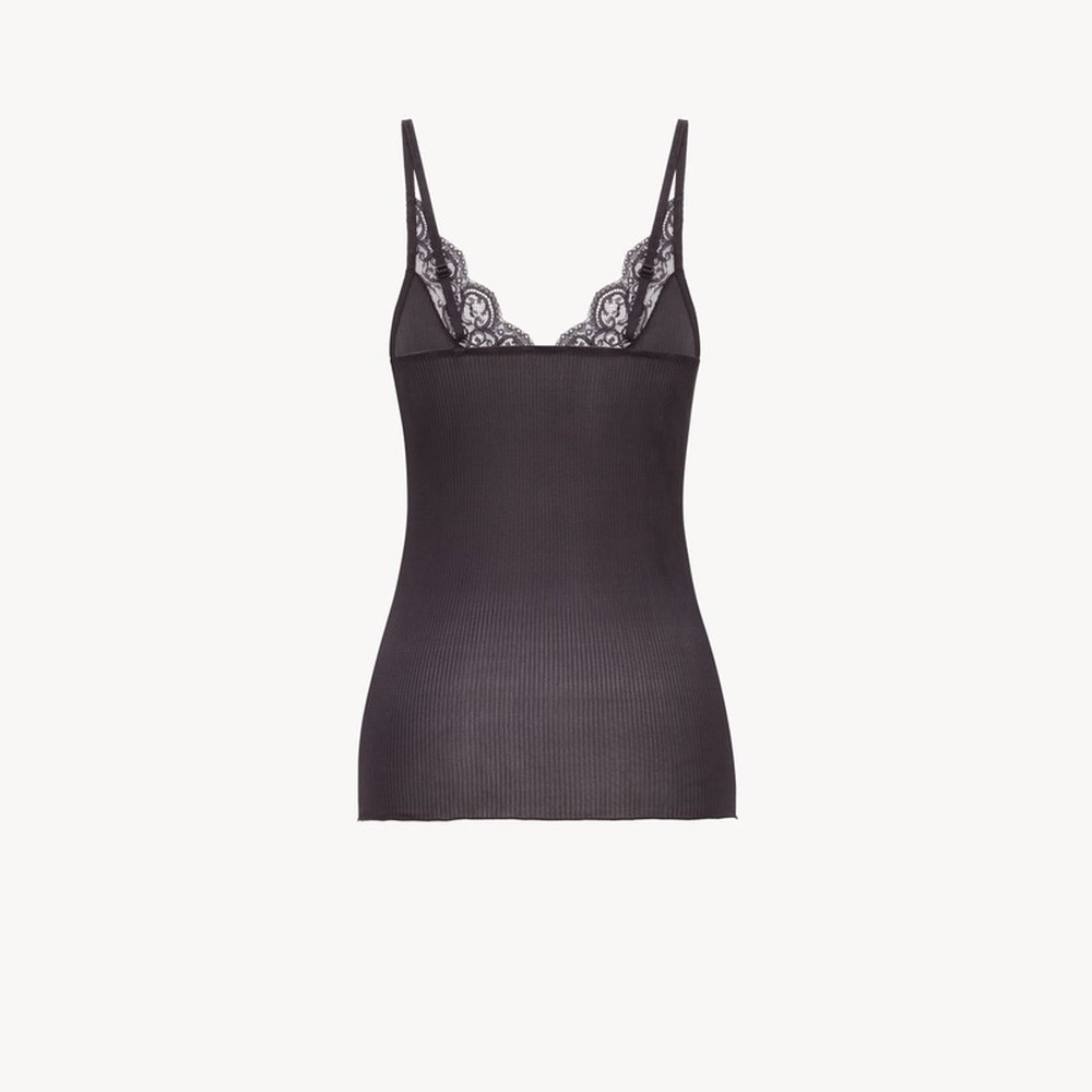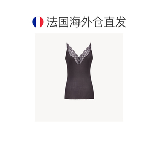 自营欧洲直邮YSL圣罗兰 上衣 女士乌木色桑蚕丝荷叶边无袖