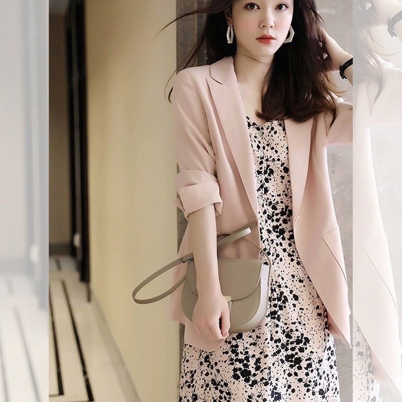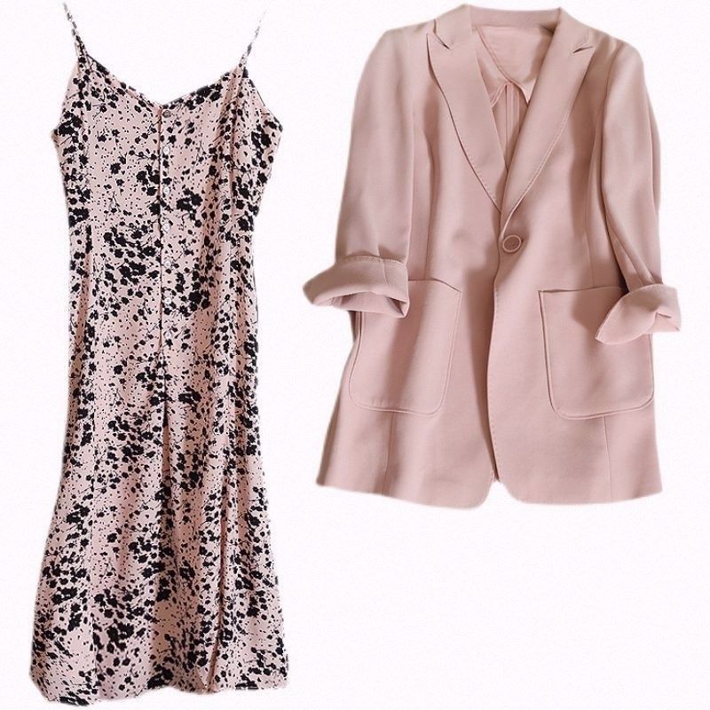 轻熟风设计感小众职业西装 气质碎花吊带连衣裙女夏 两件套裙子法式