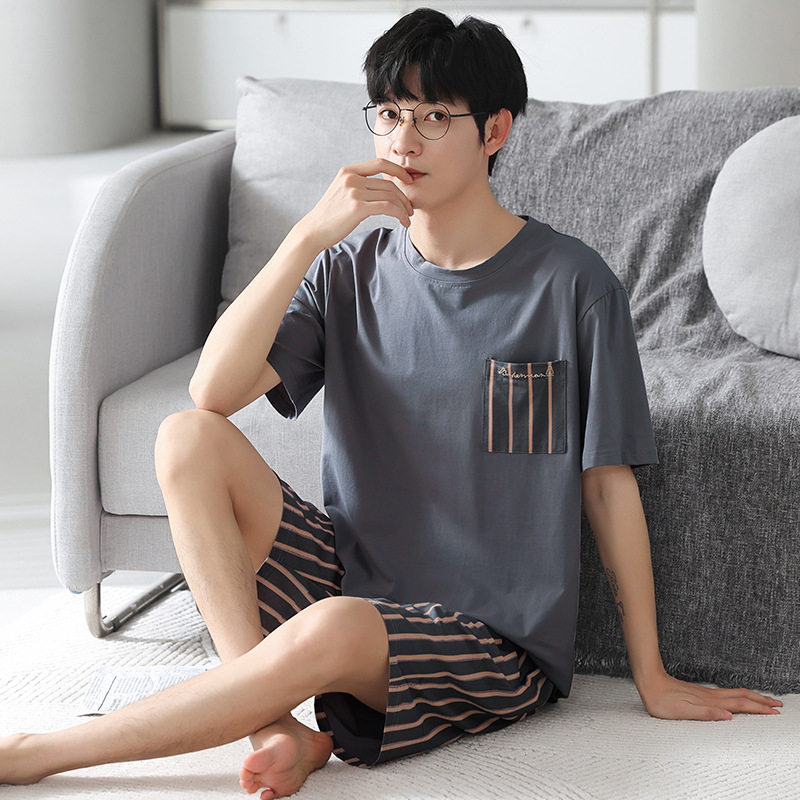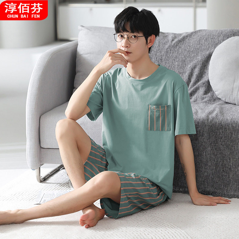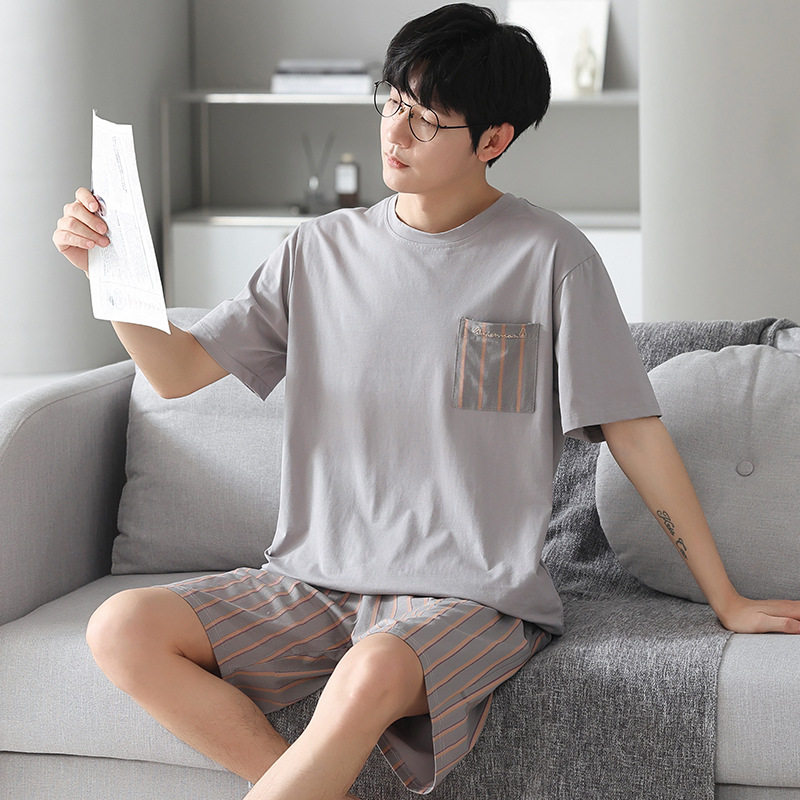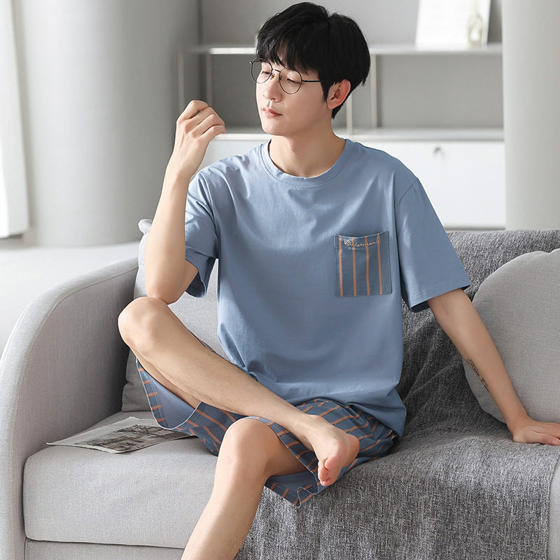 短袖 薄款 短裤 加肥大码 简约休闲 男士 睡衣男款 棉绸家居服夏季