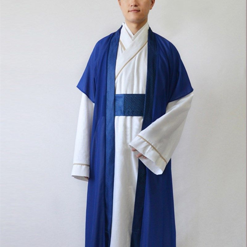 青泠谷原创汉服小团花全棉色织秋季 双面穿圆领袍
