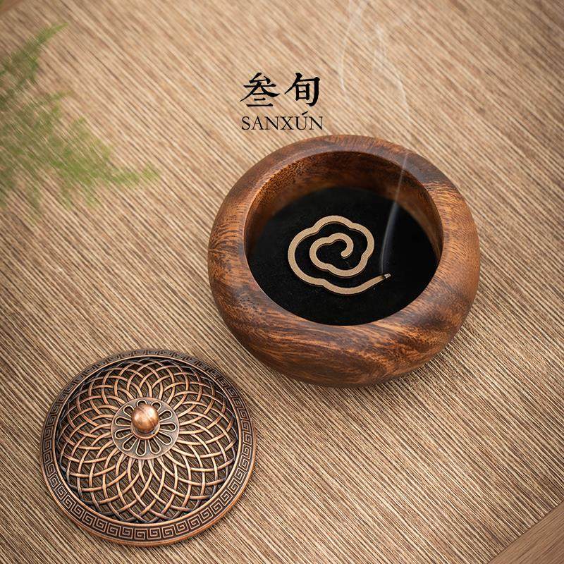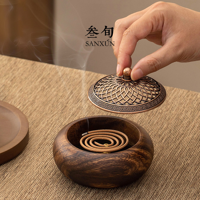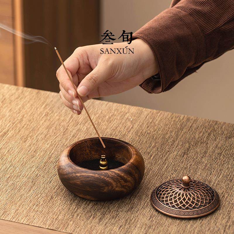 叁旬禅境胡桃木香炉家用室内香薰炉环香檀香炉香篆炉茶道创意摆件