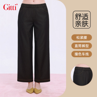 阔腿裤 Gitti 女刺绣百搭九分裤 牛仔裤 G261033 吉蒂松紧腰宽松大码