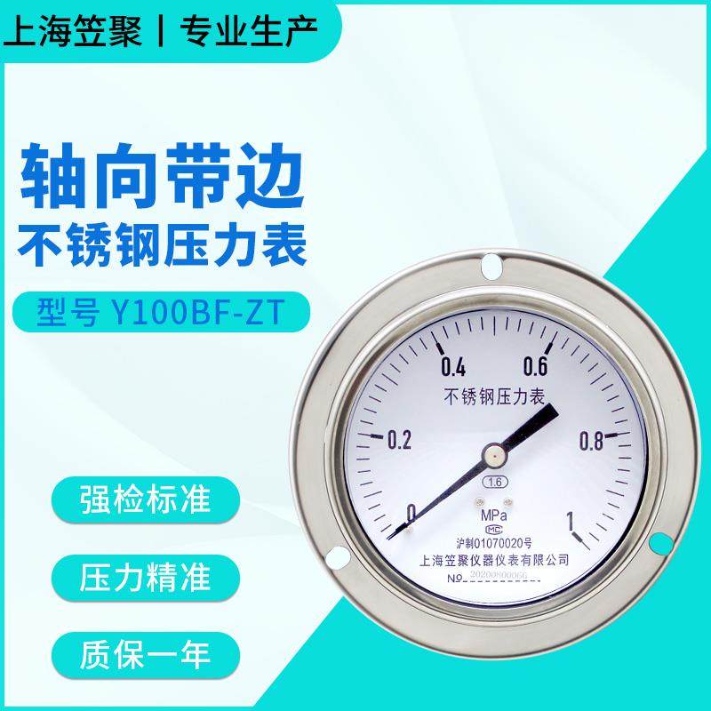轴向带边耐震压力表YN 250KG抗震油压液压表真空表不锈钢 60ZT100