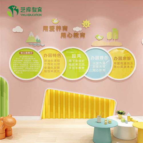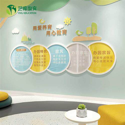 速发幼化园文儿主题墙贴装 饰成品楼梯环创大厅形象理念公告宣栏传