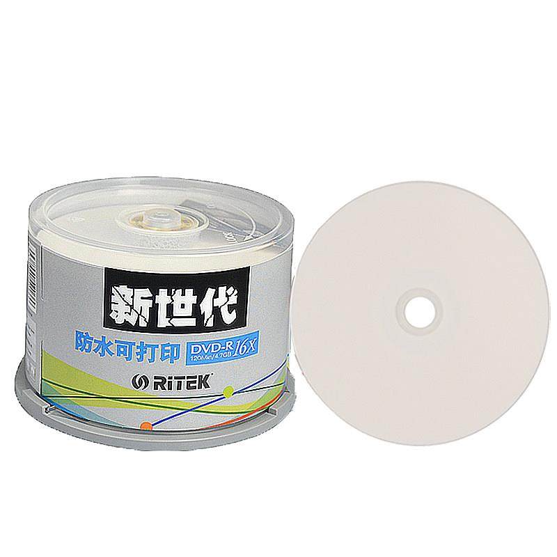 50片桶装 铼德 R空白刻录光盘16X 新世代防水可打印DVD 白色 RITEK