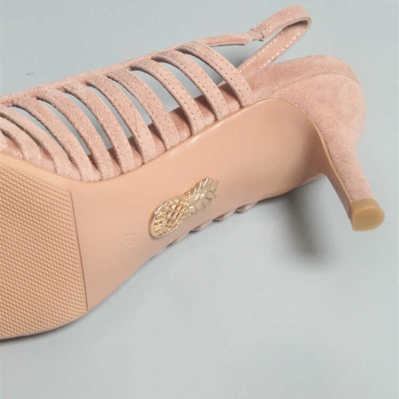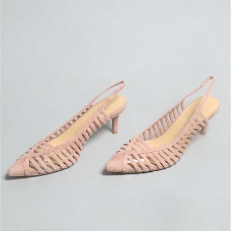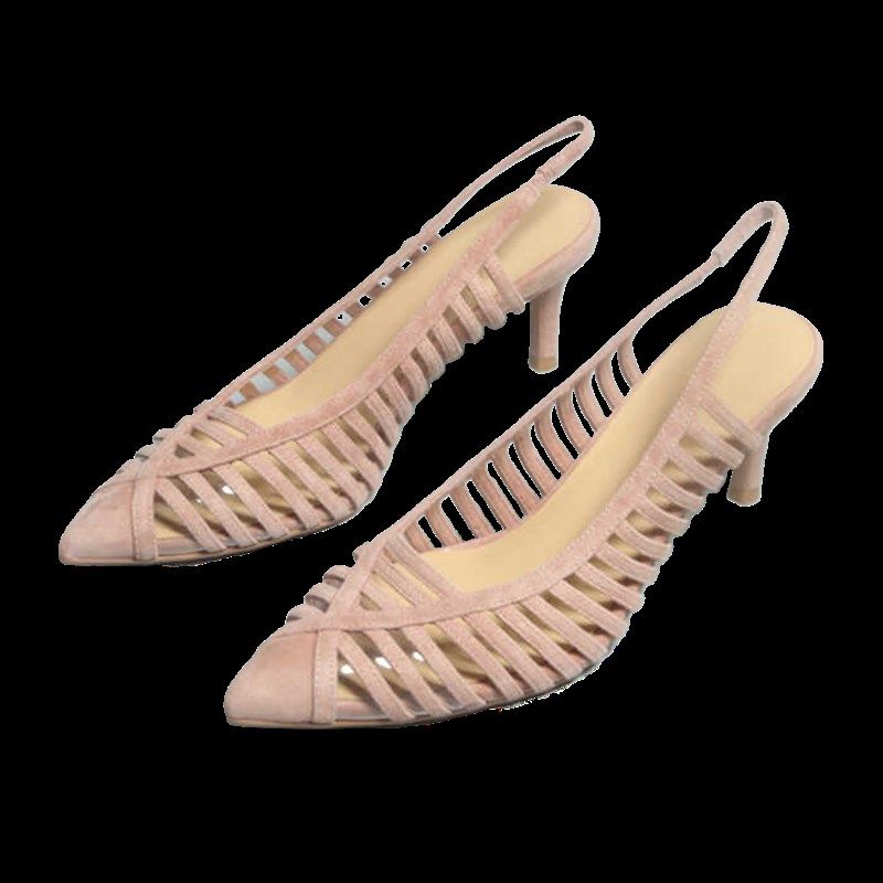 包头尖头高跟女凉鞋 台款 底细跟羊磨砂皮透明硅胶带鞋 防滑鞋 子 新款