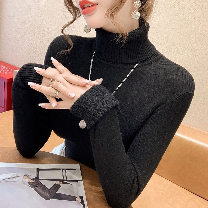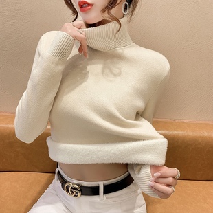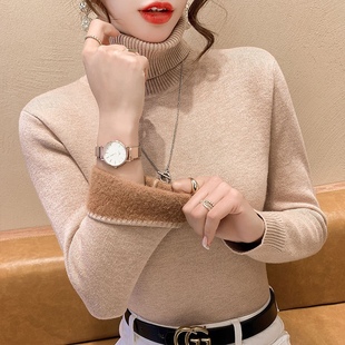 针织加绒保暖上衣 内搭毛衣洋气2025年新款 半高领打底衫 女士秋冬季