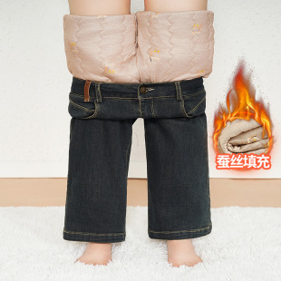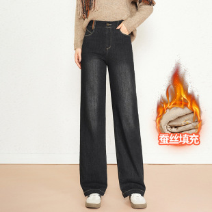 时尚 阔腿休闲长裤 牛仔直筒棉裤 加厚夹棉窄版 子 外穿女高腰冬季 新款