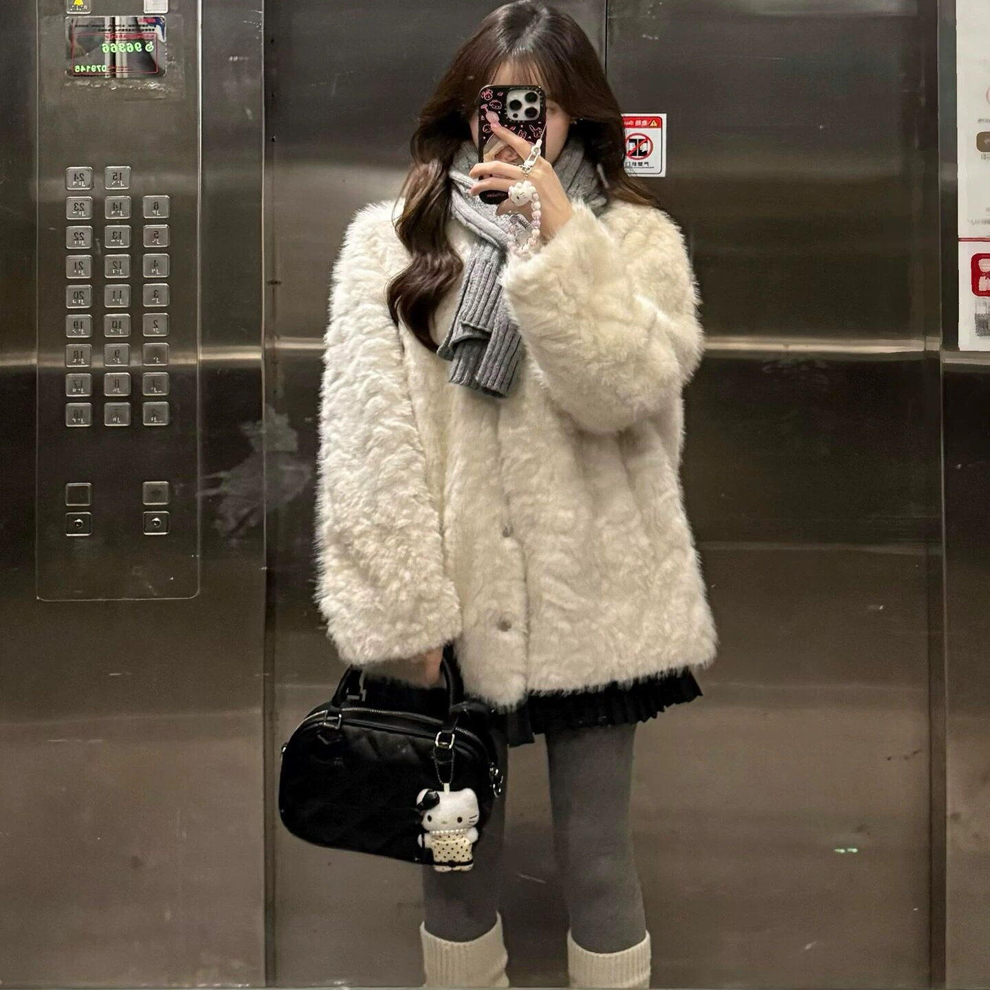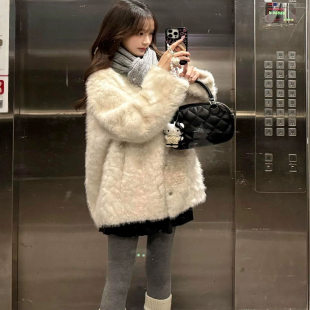 小湖羊皮毛一体外套女冬季 气质羊羔毛绒上衣 环保皮草加厚白色时尚