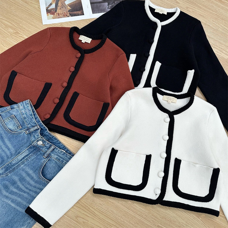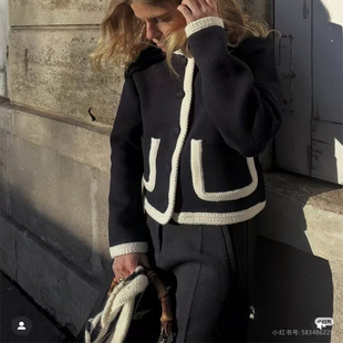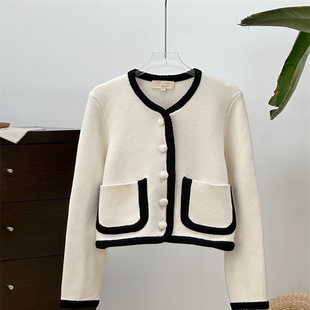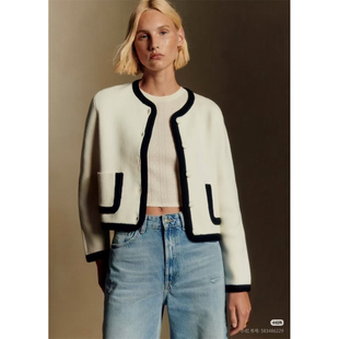 法系SEZA纯原小香风撞色手工包扣厚实针织外套25冬季 新款