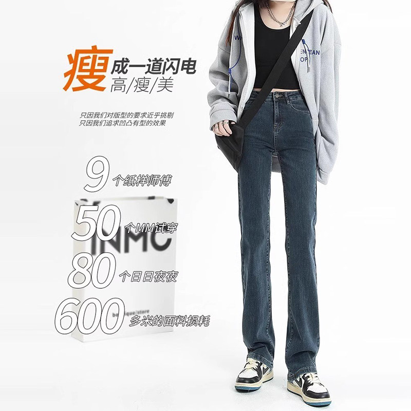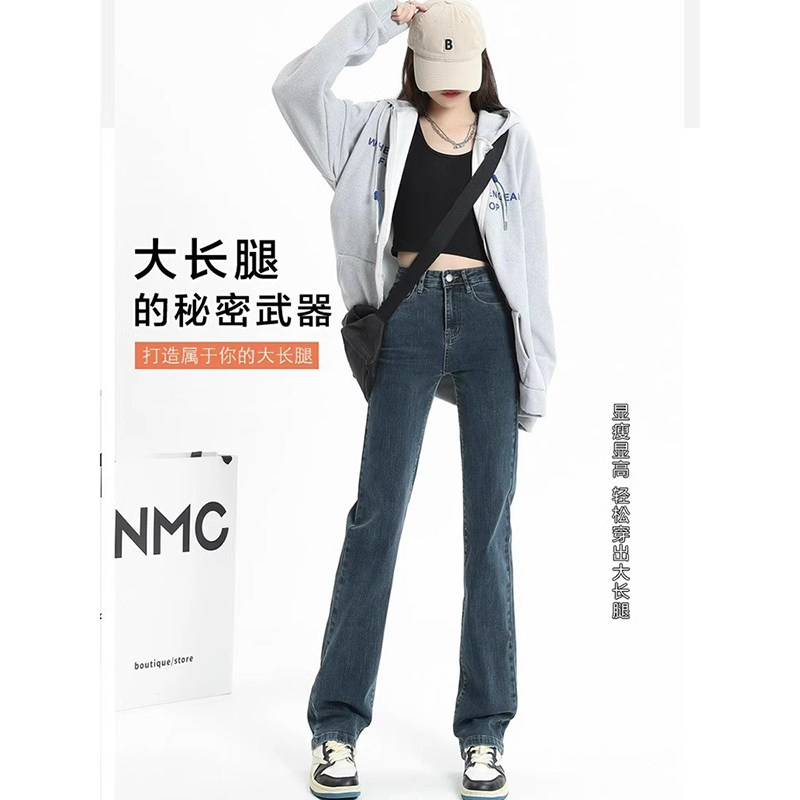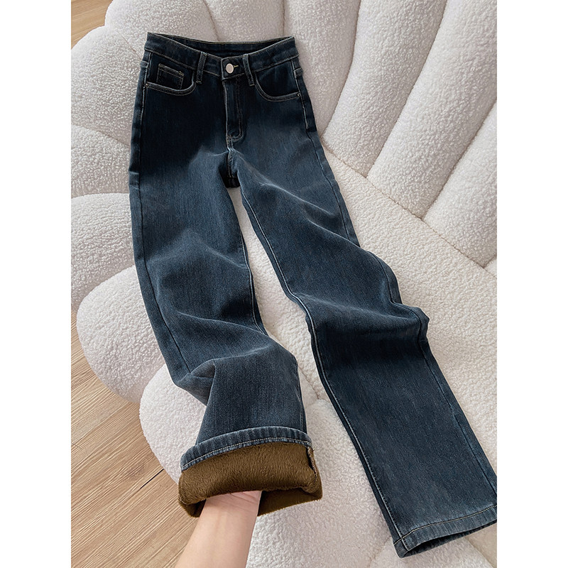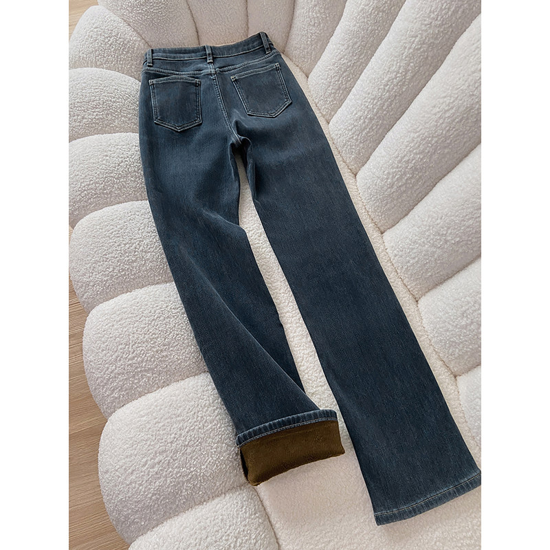 弹力烟管裤 加绒加厚直筒牛仔裤 高腰显瘦窄版 秋冬季 子 女2025年新款